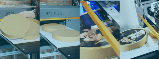 Technológia umožňuje rýchly prechod z plochej tlače na tlač valcovitých predmetov pomocou rotačného zariadenia ROT 360, ako napr. fľaše, poháre, sviečky, atď.