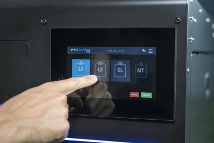PreTreater Pro je vybaven automatickým recirkulačním systémem pro obě kapaliny, aby byla zajištěna homogenita kapaliny a odvrácena její sedimentace. Každá zakázka je ošetřena přesně stejným tlakem, čímž je dosaženo opakovatelnosti a pevné výroby. Opakovaně použitelné a omyvatelné filtry na nádržích a tryskách je chrání před usazeninami, a tím zajišťují konzistentní postřikové vzory. Systém nabízí přesné nastavení po 1 ml množství stříkané kapaliny na konkrétní oblast, kterou si vyberete (rozsah množství 14-40 ml). Eliminujete tak zbytečný nástřik na místa, která později nevyužijete k tisku. Snadno si vyberte konkrétní „lineární“ oblast postřiku (min. 10x1cm - max. 41x60 cm) nebo „Grid“ šachovnici, kde si jednoduše vyberete nesouvislou plochu postřiku (min. 15x10cm - max. 41x60 cm) podle potřeby, bez přebytečného tekutého odpadu.