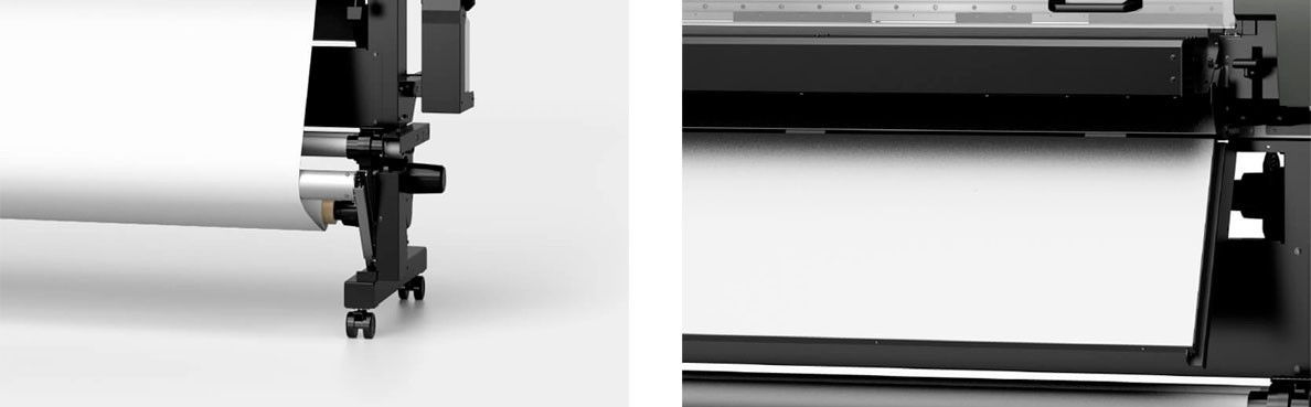 Automatický navijak médií v štandarde Zariadenie sa dodáva vrátane automatického navijakového systému médií (take-up unit), ktorý umožňuje dlhé bezobslužné tlačové behy — zariadenie samo navíja vytlačené médium bez nutnosti obsluhy.